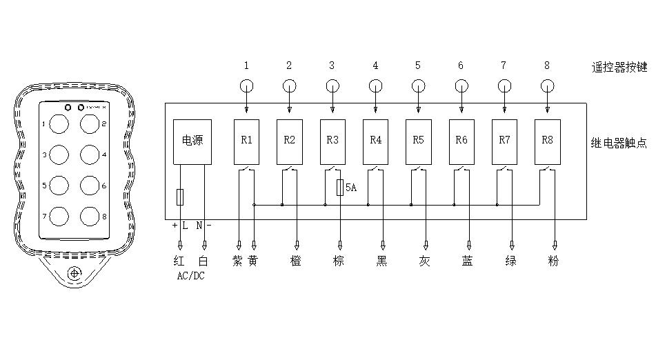 輸出繼電器:繼電器干接點輸出,共8個功能控制繼電器,點動輸出。